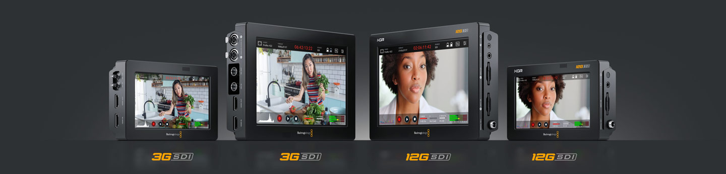 O modelo de 7” possui os mesmos recursos do modelo 5" 12G HDR, mas inclui uma tela LCD 7" HDR. Você também obtém dois gravadores de cartão SD e gravação em unidades flash USB‑C externas. Ambos os modelos Blackmagic Video Assist 12G gravam Blackmagic RAW quando conectados a câmeras compatíveis.